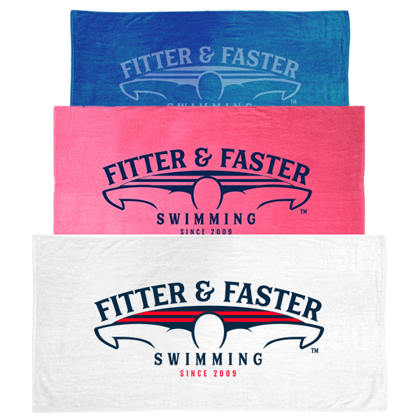 Dry off after your practices and meets with a nice, large, soft Fitter and Faster beach towel! Wrap yourself up! This towel is 5 feet x 2.5 feet long (60″ X 30″)! Available in blue, pink and white. Enjoy!