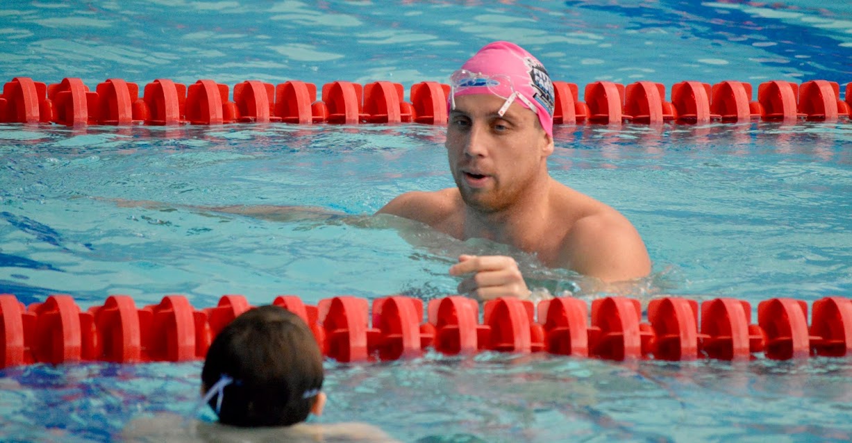 Feedback from Burckle’s clinics is phenomenal: “He would describe a drill in detail, he would perform it twice and then let the kids do it. He was giving TLC to swimmers who were struggling with it. The high fives and fist pumps were great, and the shaking of the hands with the kids after he raced them meant a lot!” one parent raved.